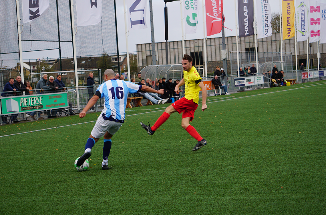 Na een goed half uur spelen was de thuisploeg inmiddels iets sterker geworden en sloeg het ook direct toe. Op links werd een lage strakke voorzet gemakkelijk binnen gelopen door aanvaller Eric van Hout. Nog geen tien minuten later leek de geschiedenis zich te herhalen toen wederom een voorzet vanaf links kon worden binnen geschoten. Dit keer dan wel in tweede instantie omdat doelman Gijs van der Meer zich niet zomaar liet vermurwen. De doelpuntenmaker was dit keer Leon de Lange. Hij zal zichzelf deze middag niet populair hebben gemaakt bij zijn broer Falco die namens Zevenhoven lijdzaam moest toezien dat er met een 2-0 achterstand gerust mocht gaan worden.