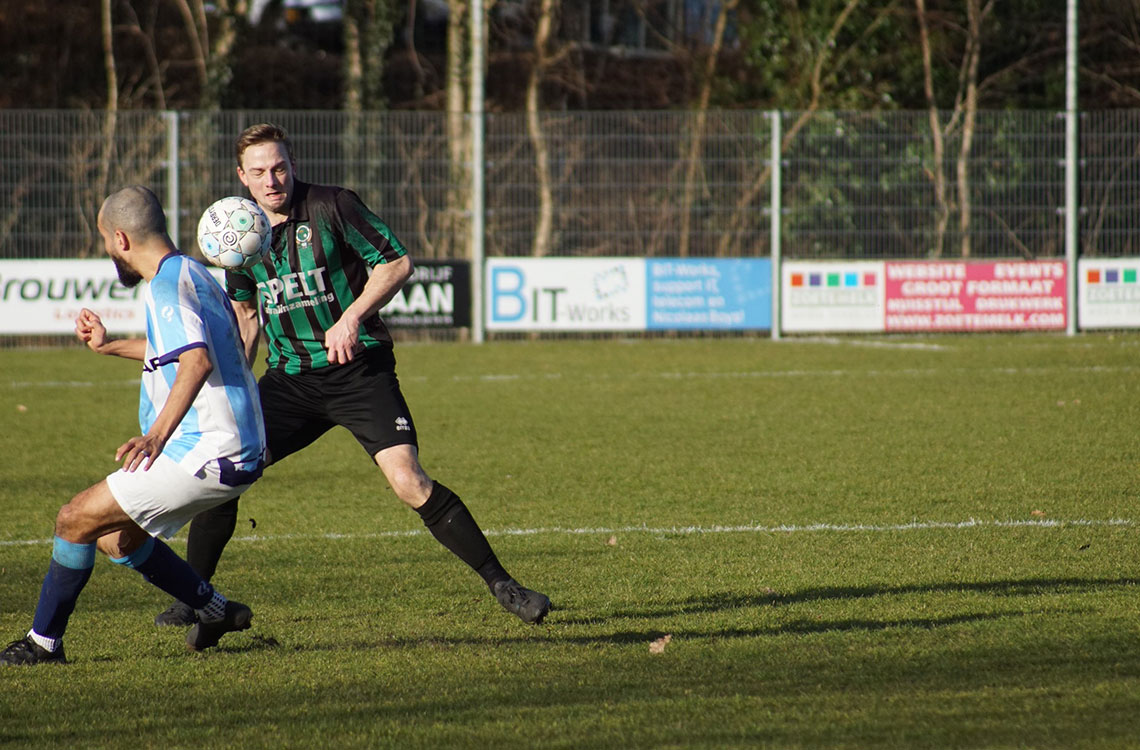 “Door het moeilijk bespeelbare veld was het lastig voor beide teams om echt voetballend tot kansen te komen”