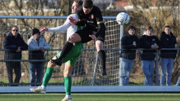 Van der Laan: ‘Echt heel zonde dit. Zij waren de betere ploeg hoor zonder twijfel. Vooral de eerste helft, maar we kwamen er gaandeweg steeds beter in en kregen de kansen. Uiteindelijk drukt de arbitrage toch wel een stempel op de wedstrijd. We hadden denk ik toch wel een punt verdiend.’